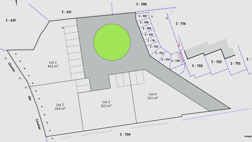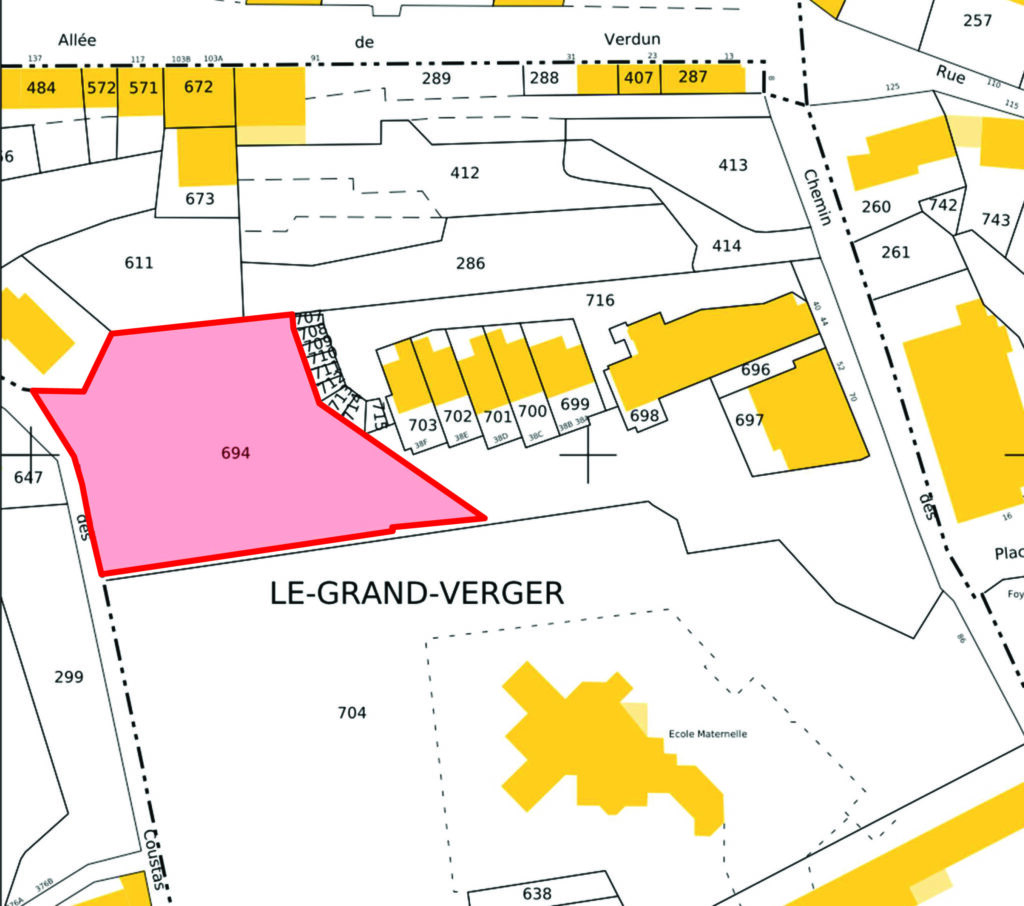Situé au sud des bâtiments existants il comprendra quatre lots dont trois de 320 m² pourront être achetés pour construction de maisons d’habitation.